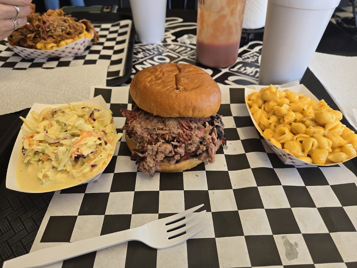 Baked beans were delicious but the coleslaw is awful. Didn't care for the mac and cheese either. Pulled pork was amazing and the brisket was tasty, but a bit dry.